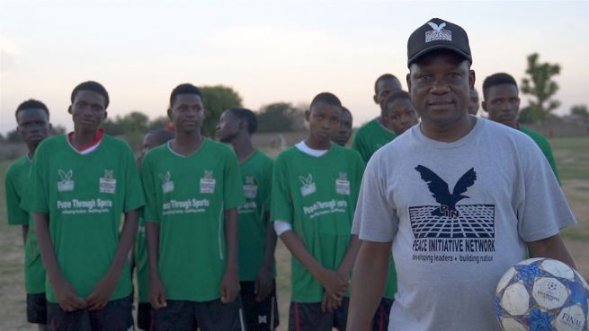 Michael ist in Kano aufgewachsen und litt selbst unter dem Konflikt zwischen Christen und Moslems. Durch Fußball versucht er heute junge Menschen zu verbinden.